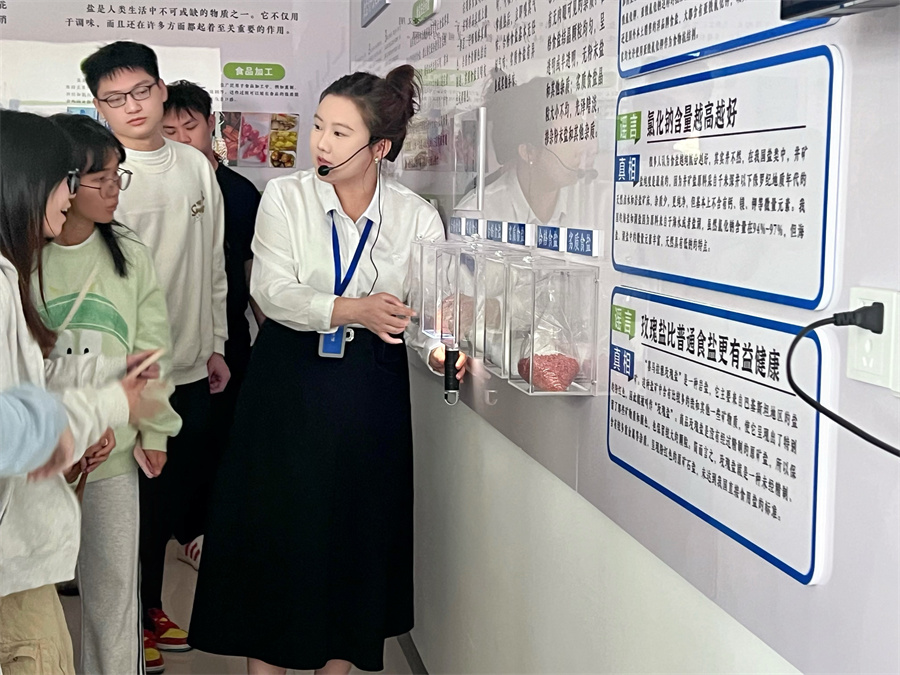 最后,南寧分公司工作人員帶領(lǐng)大家參觀食鹽科普驛站,并呈現(xiàn)了一堂有趣的食鹽科普課。課程介紹了中國鹽業(yè)的發(fā)展歷史、食鹽分類、生產(chǎn)工藝流程,以及食鹽加碘、鹽品選購等專業(yè)知識。現(xiàn)場展示了如何辨別合格食鹽,提示食鹽相關(guān)誤區(qū),以及食鹽在日常生活中的巧妙運(yùn)用等實(shí)用信息。課堂妙趣橫生、通俗易懂,大家聽得津津有味,與工作人員積極互動,現(xiàn)場氛圍十分活躍。