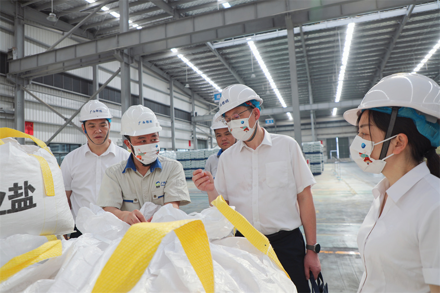 在廣西銀鵬品種鹽有限公司,邱潮涌從嚴(yán)從細(xì)檢查安全管控設(shè)備設(shè)施運(yùn)行、節(jié)前安全防范措施落實(shí)及7S精細(xì)化管理工作等情況,著重排查生產(chǎn)重點(diǎn)部位和關(guān)鍵環(huán)節(jié)的安全風(fēng)險(xiǎn)隱患,認(rèn)真聽取銀鵬公司關(guān)于生產(chǎn)經(jīng)營(yíng)、提質(zhì)增效及難點(diǎn)堵點(diǎn)等情況。