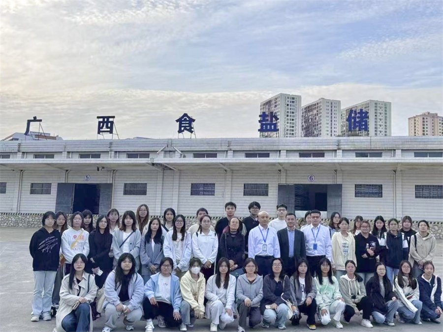 本次研學(xué)地點(diǎn)設(shè)在集團(tuán)所屬南寧分公司。南寧分公司黨支部書記、總經(jīng)理范高敏對各位師生的到來表示熱烈歡迎,并為大家上了一堂精彩的食鹽知識課,重點(diǎn)講述了國家食鹽相關(guān)政策,并介紹集團(tuán)所推出的雪花鹽、低鈉鹽、零添加系列鹽品等主推產(chǎn)品。隨后,范高敏帶領(lǐng)大家前往廣西食鹽儲備中心進(jìn)行參觀。他表示,廣西鹽業(yè)集團(tuán)作為國家食鹽儲備的重要基地,承擔(dān)著保障食鹽安全的重大社會責(zé)任,多年來為廣大人民群眾提供了堅(jiān)實(shí)保障,并向大家展示了儲備中心的先進(jìn)設(shè)施和倉儲管理場景,大家表示出極大興趣,積極提問互動。