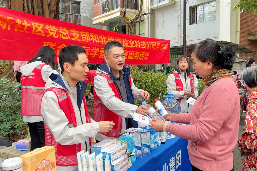 廣西北部灣鹽業(yè)科技有限公司黨支部積極響應(yīng)號(hào)召,深入南寧市心圩街道創(chuàng)新社區(qū)開(kāi)展學(xué)雷鋒志愿服務(wù)活動(dòng),將健康用鹽知識(shí)送到了群眾百姓身邊。南寧分公司黨支部為長(zhǎng)者食堂捐贈(zèng)低鈉鹽,科普低鈉用鹽理念。柳州鹽業(yè)有限公司黨支部開(kāi)展愛(ài)心義診活動(dòng),通過(guò)健康知識(shí)宣講、趣味互動(dòng)問(wèn)答等形式,向少數(shù)民族群眾普及慢性病預(yù)防知識(shí),架起民族團(tuán)結(jié)“連心橋”。
