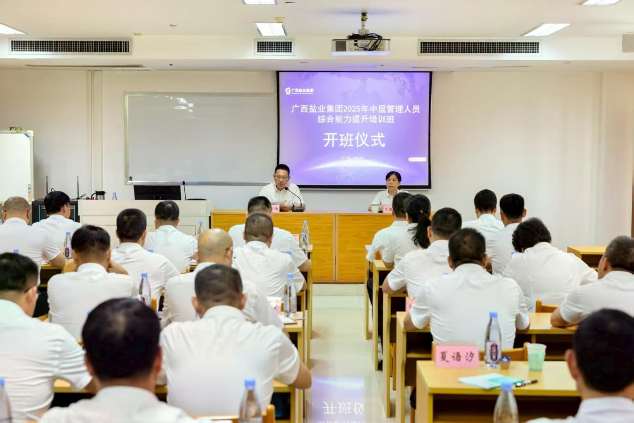 為深入貫徹落實新時代人才工作要求,進一步提升中層管理人員綜合管理能力與履職水平,打造高素質(zhì)管理團隊,7月15日-18日,廣西鹽業(yè)集團在中共廣西區(qū)委黨校舉辦2025年中層管理人員綜合能力提升培訓(xùn)班。集團總部各部室及所屬企業(yè)中層管理人員、人才工程培養(yǎng)對象、新提拔干部等50余人參訓(xùn)。集團黨委書記、董事長邱潮涌出席開班式并作動員講話。